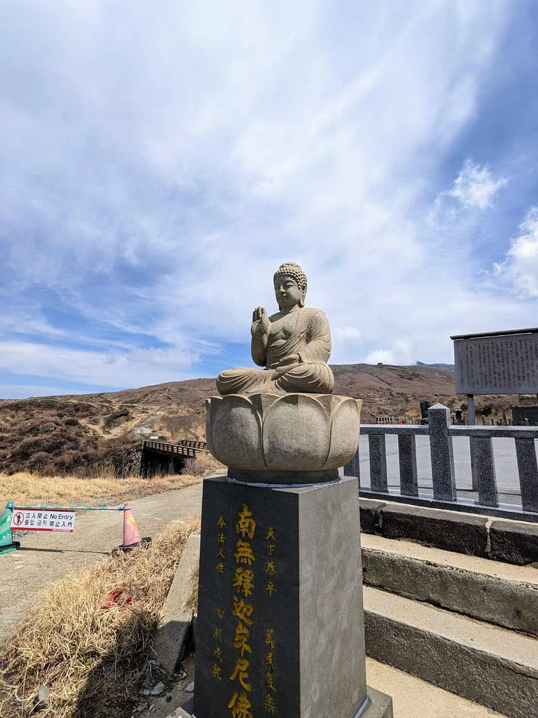 言い伝えによれば、火口には地獄があり、その亡者や鬼たちを十一面観音菩薩が鎮めたとのこと。